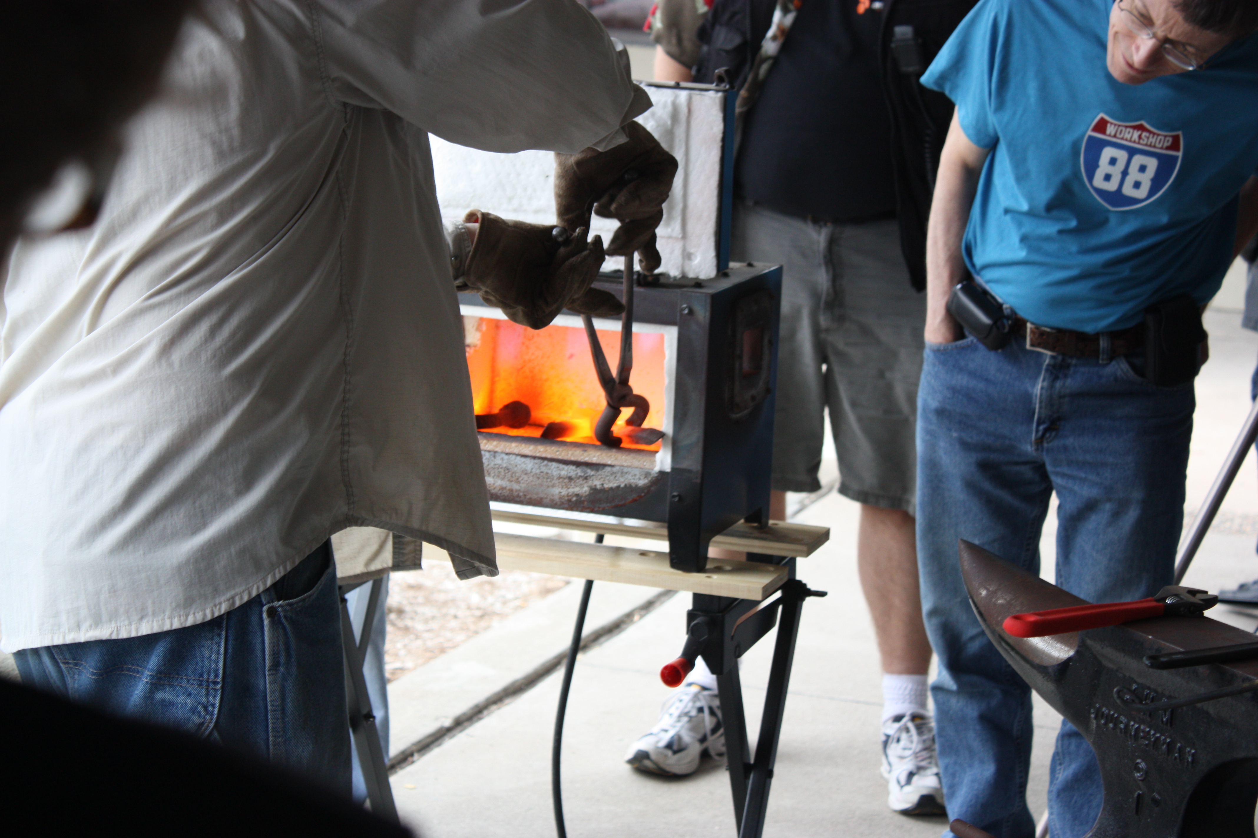 We showed up in the middle of festivities, but the first thing that we definitely had to see was this: A hobbyist blacksmith doing a demonstration just outside the doors.